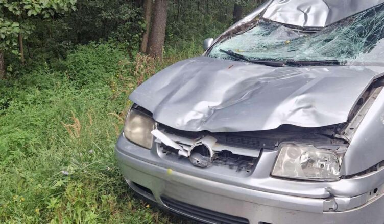 – Po dojechaniu na miejsce zdarzenia stwierdzono, że pojazd marki Volkswagen zderzył się z łosiem. Zwierzę po uderzeniu oddaliło się w nieznanym kierunku. Samochodem osobowym podróżowało 5 osób w tym 1 roczne dziecko. W wyniku zdarzenia jedna osoba została zabrana do szpitala. Działania strażaków polegały na zabezpieczeniu miejsca zdarzenia i trwały do godz. 15:53 – relacjonował działania służb Jan Sobków, rzecznik straży pożarnej