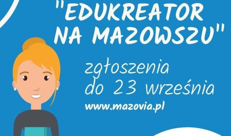 Ciekawe lekcje, zaangażowani nauczyciele i szkoła otwarta na potrzeby uczniów, czyli edukacja z wyobraźnią. Samorząd województwa doceni kreatywne placówki i twórczych pedagogów. Jeśli Twoja szkoła jest miejscem pomysłowych przedsięwzięć zapraszamy do wzięcia udziału w III edycji konkursu ?Edukreator na Mazowszu?. Zgłoszenia do 23 września br.