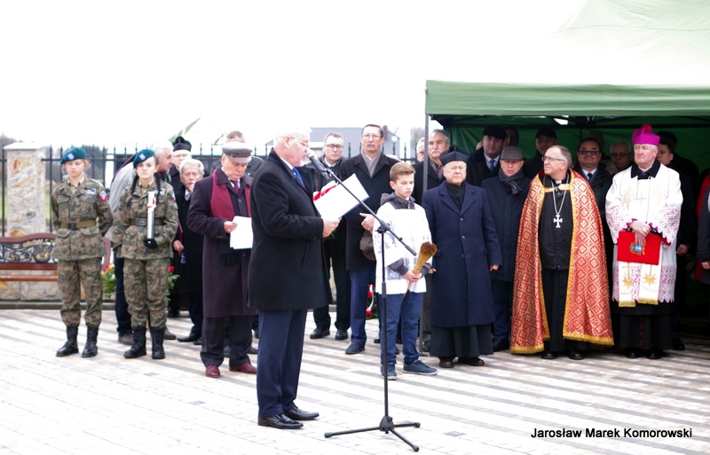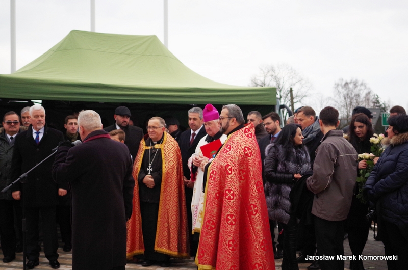 Do zgromadzonych przy pomniku gości list okolicznościowy wystosował prezydent Rzeczypospolitej Polskiej Andrzej Duda. List odczytał Tadeusz Deszkiewicz, doradca prezydenta. Przemówienia wygłosili również starosta Kazimierz Rakowski i ambasador Edgar Gazarjan. Zaproszeni goście złożyli pod pomnikiem wiązanki, aby w ten sposób podkreślić doniosłość uroczystości.