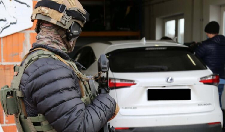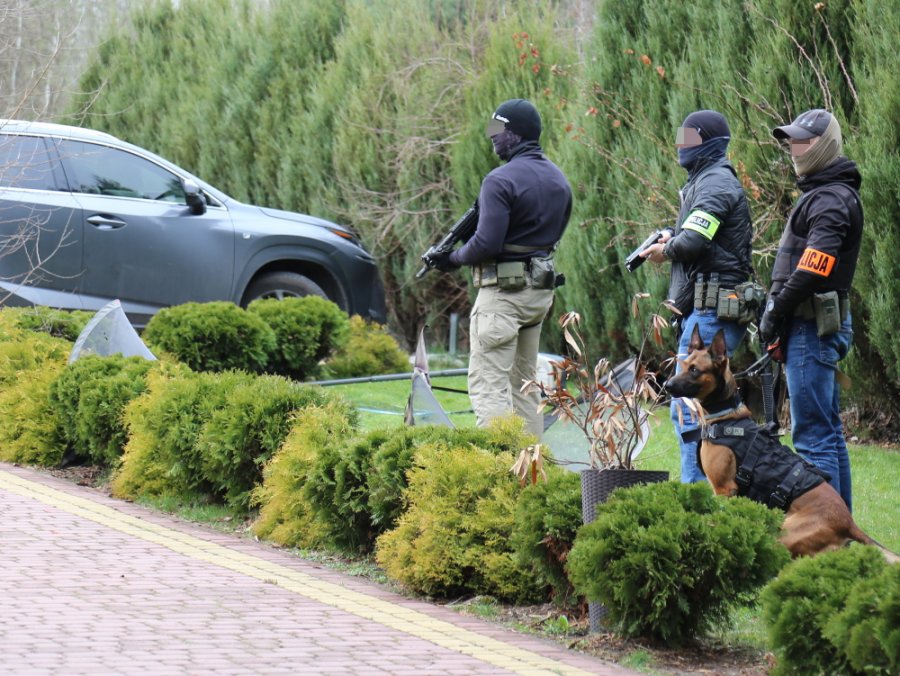 W trakcie prowadzonych działań funkcjonariusze wspólnie z technikiem kryminalistyki oraz biegłymi z zakresu mechanoskopii Centralnego Laboratorium Kryminalistycznego Policji i Laboratorium Kryminalistycznego KSP przeszukali posesję, na której ukrywał się poszukiwany. Policjanci zabezpieczyli do badań mechanoskopijnych dwa Lexusy, a także Hyundaia Tuscon, które znajdowały się na posesji. Istnieje podejrzenie, że samochody zostały przerobione, bądź naprawione częściami pochodzącymi ze skradzionych pojazdów. Dodatkowo, w garażach mieszczących się na posesji, zabezpieczyli części i podzespoły samochodowe: skrzynie biegów, poduszkę powietrzną, nawigację, urządzenie do dekodowania kluczyków, służące do kradzieży samochodów, a także deskę rozdzielczą.