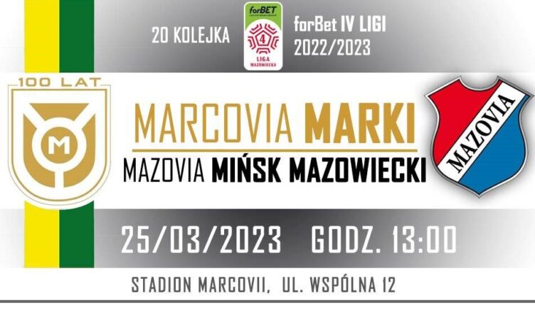 Najpierw porażka, potem remis, a w sobotę… Wszyscy kibice Marcovii chcieliby teraz zwycięstwa, ale poprzeczka jest zawieszona naprawdę wysoko. W ramach 20 kolejki forBet IV ligi Marcovia zmierzy się z Mazovią Mińsk Mazowiecki. Pierwszy gwizdek sędziego zabrzmi przy Wspólnej 12 o godz. 13:00.