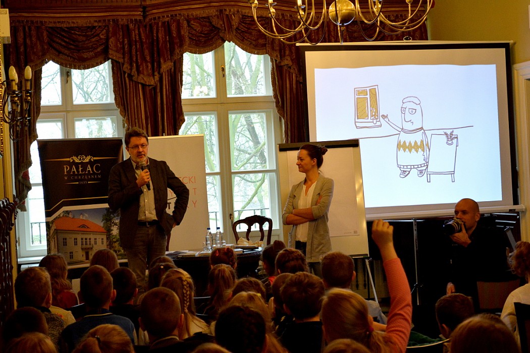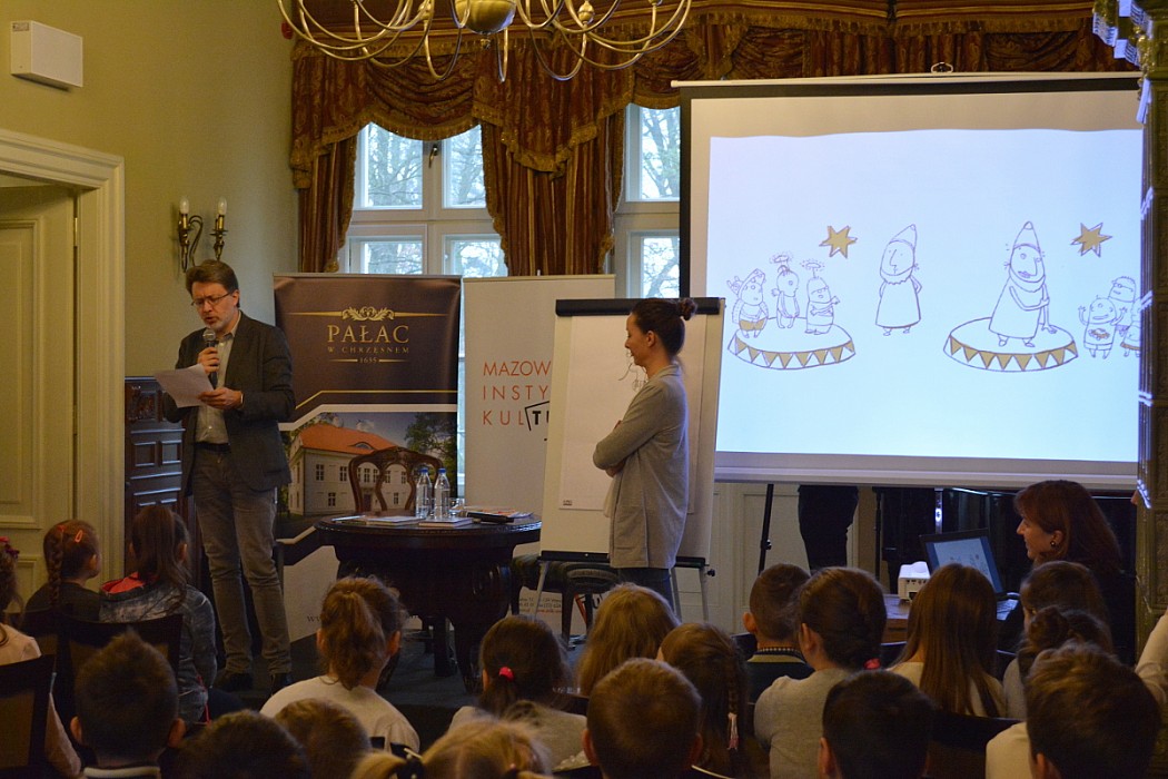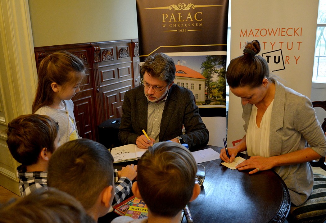 W Pałacu w Chrzęsnem, we współpracy z Powiatem Wołomińskim, z dużym powodzeniem, realizowany jest projekt Mazowieckiego Instytutu Kultury ? ?Chrzęsne ? literackie serce Mazowsza?. W czwartek,  16 listopada, spotkania z dziećmi i młodzieżą poprowadzili ? Michał Rusinek i Joanna Rusinek, proponując młodej widowni autorską audycję ? ?Domowa wierszykownia? oraz warsztaty językowe ? ?Pypcie na języku?.