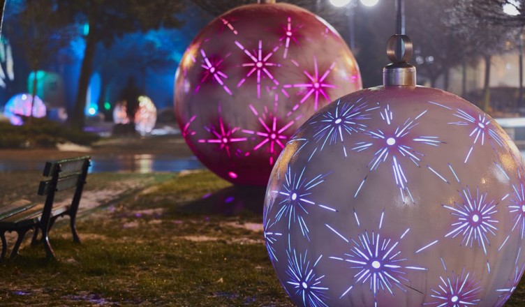 Place Kościuszki i Wolności w Radzyminie zamieniły się w galerię gigantycznych ozdób świątecznych, które rozświetlają centrum miasta kolorowym światłem. Kilkadziesiąt sferycznych bombek z betonu, wyrzeźbionych w różnorodne, świetliste kształty, rozmieszczono na skwerach i przy parkowych alejach. Bombki są podświetlane od środka barwnym, zmieniającym się oświetleniem LED, które tworzy świąteczną atmosferę i daje piękny efekt wizualny.