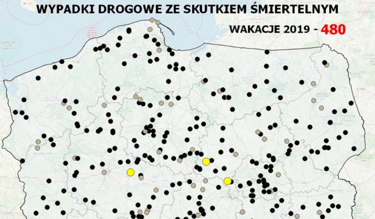 Mapa wypadków drogowych ze skutkiem śmiertelnym ? WAKACJE 2019