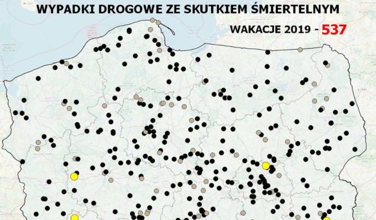 Mapa wypadków drogowych ze skutkiem śmiertelnym ? WAKACJE 2019