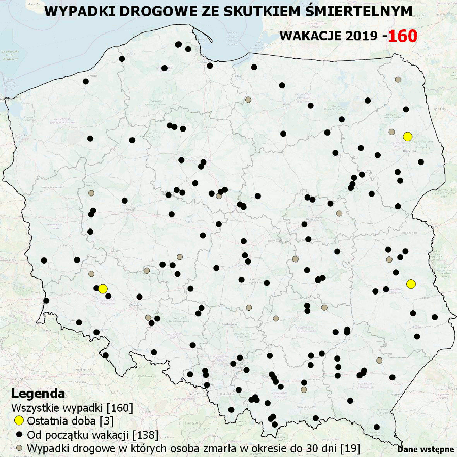 Liczby, tabele, czy porównania nie zawsze przemawiają do wyobraźni kierowców i pieszych. Dlatego też każdego dnia przez cały okres wakacji Policja prezentuje bieżącą liczbę i lokalizację wypadków drogowych ze skutkiem śmiertelnym z ostatniej doby oraz od początku wakacji. Niestety z każdym dniem mapa będzie coraz mniej przejrzysta, ponieważ przybywać będą nowe punkty. Pod każdym punktem kryje się ludzki dramat!