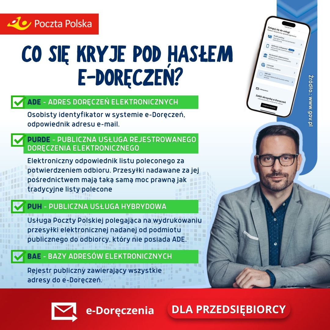 E-doręczenia to elektroniczny odpowiednik listu poleconego za potwierdzeniem odbioru. Dzięki tej usłudze podmioty publiczne, obywatele i firmy mogą korzystać z wygodnych i bezpiecznych doręczeń elektronicznych. Są one równoważne prawnie tradycyjnej przesyłce poleconej za potwierdzeniem odbioru.