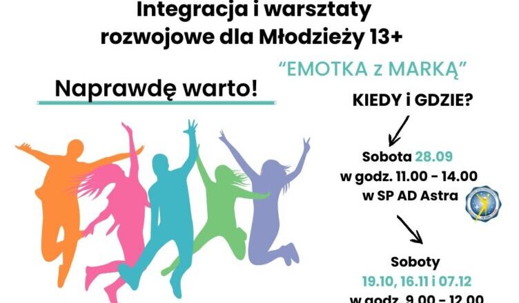 CAF3 zaprasza młodzież do udziału w warsztatach rozwojowych i integracji prowadzonych przez Fundację Emotka.