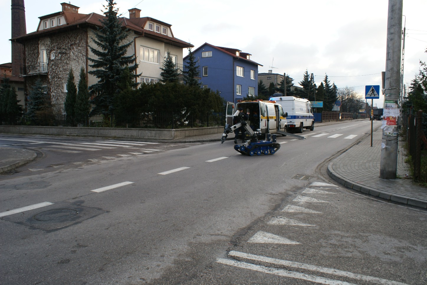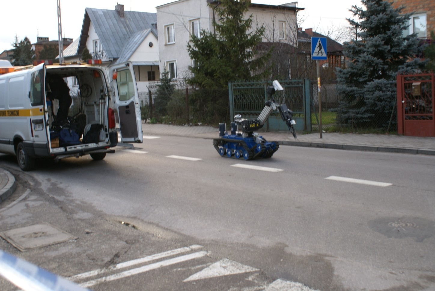 Na miejsce przybyły również służby ratownicze i techniczne: straż pożarna, pogotowie ratunkowe, pogotowie energetyczne, pogotowie gazowe. Policyjni pirotechnicy przy użyciu specjalistycznego robota Lucka sprawdzili zawartość torebki. Wewnątrz faktycznie znajdował się granat oraz butelka z benzyną. Ładunek w specjalnej beczce pirotechnicznej został przewieziony na poligon w Zielonce gdzie został zdetonowany.