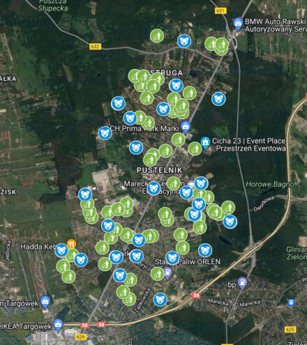 Już wkrótce na terenie Marek pojawią się nowe kosze uliczne i psie stacje z logo MBO. Poniżej przedstawiamy mapę z lokalizacjami małej architektury, która zostanie zamontowana w ramach MBO (75 szt. koszy oraz 25 szt. psich stacji) oraz 4 szt. dodatkowych koszy: