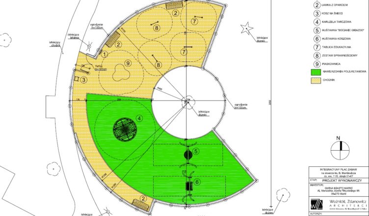 Dwa przedsięwzięcia z Mareckiego Budżetu Obywatelskiego wchodzą w fazę realizacji. Na skwerze ks. Markiewicza powstanie nowiutki plac zabaw. Będzie to ogrodzony obiekt o nawierzchni poliuretanowej. Znajdą się tam m.in. karuzela tarczowa, huśtawka bocianie gniazdo, huśtawka koszowa i piaskownica (plan na zdjęciu). Drugą inwestycją jest modernizacja placu przy ul. Wrzosowej. Tu zdemontowane zostaną stare urządzenia i zamontowane nowe zabawki. Będą to: zestaw zabawowy ze zjeżdżalniami, piramida linowa, bujaki i huśtawka bocianie gniazdo. Dziś podpisaliśmy umowę z wykonawcą obu robót. Zwycięzcą przetargu okazała się firma Bis-Wod-Kan z Raszyna, która zrealizuje zamówienie za prawie 239 tys. zł.