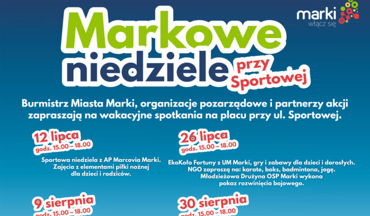 Partnerzy akcji: MCER, MOK, AP Marcovia, OSP Marki, Stowarzyszenie ?Razem w przyszłość?; Fundacje: Rozwoju ?Kolor?, ?Sport to connect?, Uczniowskie kluby sportowe: ?Sanchin?, ?Budzilek?, ?Jedynka Marki?, ?Same Judo?, ?Box Garda?, ?Akademia Pani Szafki?; Kluby Sportowe: ?Acro Dance?, WWL Badminton Club, Gimnastyka Artystyczna Legion-Warszawa, Marcovia Piłka Ręczna oraz firmy: ?AcroFamily?, ?ASAT?, ?LIONHEART?, ?Zumba? Monika Żółtowska.