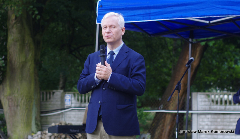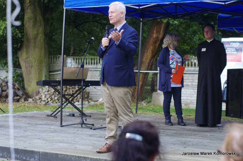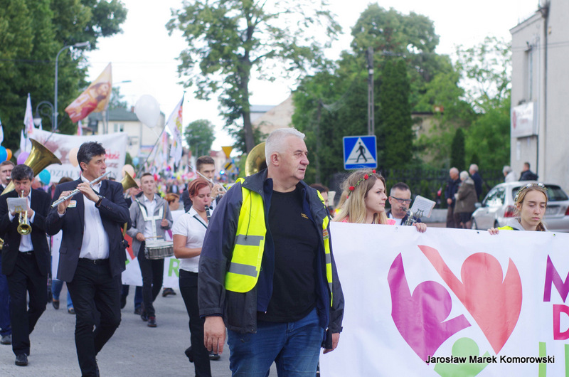 Tegoroczny Marsz przybrał nową formułę. Uczestnicy wyruszyli jednocześnie z dwóch wołomińskich świątyń: pw. św. Józefa Robotnika i pw. Matki Boskiej Królowej Polski. Oba marsze spotkały się na placu 3 maja, gdzie przed pomnikiem Jana Pała II złożono biało-czerwony wianek (w tym dniu przypadało święto Jana Chrzciciela). Tu czekali na nich parafianie z parafii Matki Boskiej Częstochowskiej na czele z proboszczem ks. Witoldem Gajdą. ? W latach wcześniejszych Marsz kończył się piknikiem w przestrzeni miejskiej. Od dwóch lat korzystam,y z gościnności ks. proboszcza Witolda Gajdy i marsz kończy piknik w ogrodach parafialnych przy ulicy Kościelnej. Pogoda w minioną niedzielę nie nastrajała organizatorów optymistycznie. Po upałach jakie we wcześniejszych dniach dały się wszystkim odczuć było znacznie chłodniej i od rana padał deszcz. – Jednak od godziny 13.00 zaczęło się przejaśniać i nasze plany związane zarówno z marszem jak i Piknikiem Rodzinnym udało się w pełni zrealizować ? opowiada Zbigniew Paziewski.