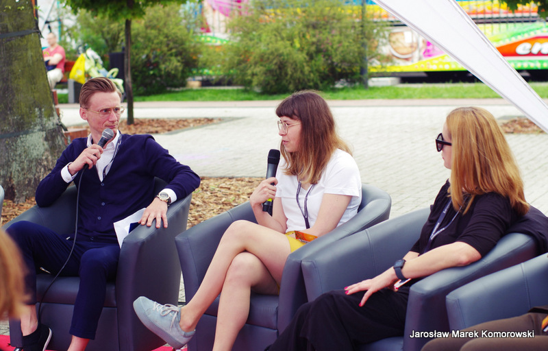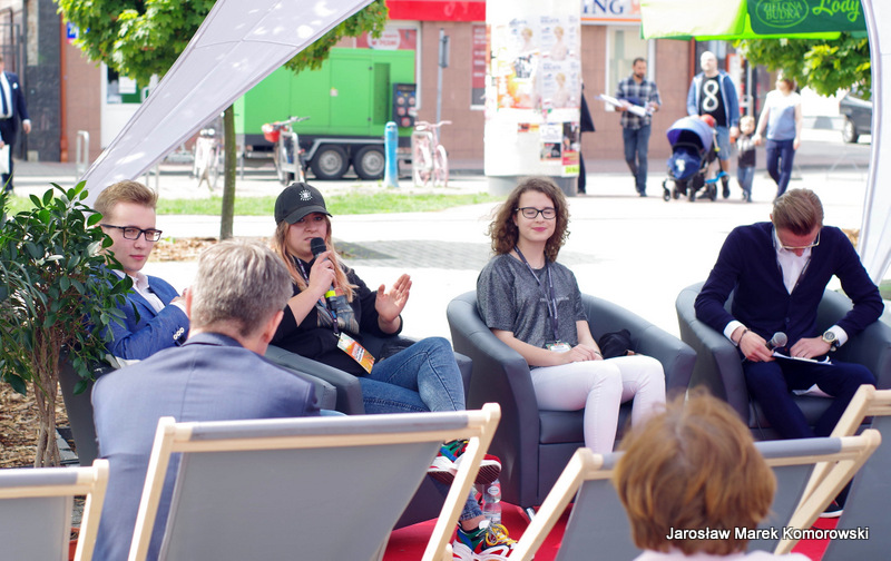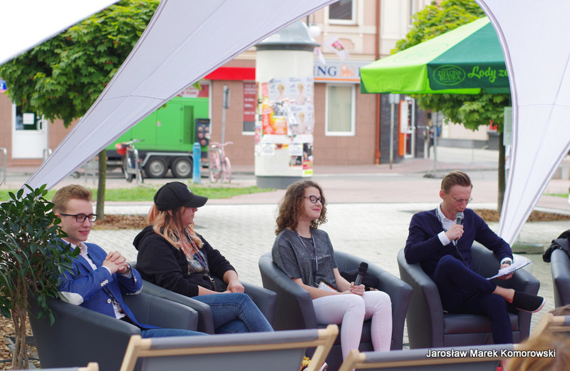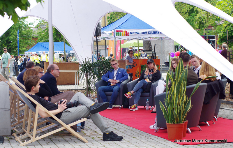 Już od godziny 13:00 rozpoczęło się świętowanie. Całkowicie nowy projekt ?Konferencja na leżakach? stanowił pierwszy punkt programu. Założenie było bardzo proste ? skupić w jednym miejscu i czasie grono kreatywnych i nieprzeciętnych osobowości związanych z Wołominem, aby w luźnej, nieformalnej atmosferze wzajemnie się zainspirować, poznać i porozmawiać na ważne tematy. Zaproszeni goście to prawdziwie kolorowa mieszanka ludzi ambitnych, nakierowanych na działanie i pełnych pasji – Aleks Mackiewicz (aktor i redaktor), Joanna Żero (graficzka i urzędniczka), Julia Klimek (vlogerka i harcerka), PaulinaWojdyna (rysowniczka i graficzka), Kuba Adamus (nastoletn szermierz) oraz Agnieszka Kalisiak (artystka i tatuażystka). Częścią leżakowej konferencji były konsultacje społeczne pt. ?Rewitalizacja? Witamy w specjalnej strefie?.