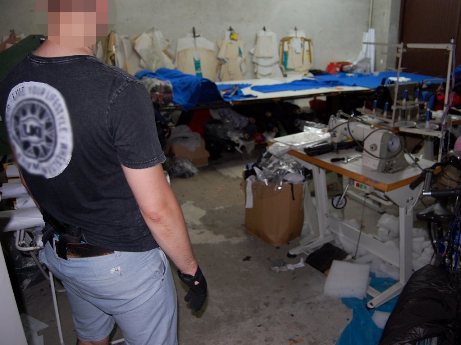 W trakcie przeszukania całego domu kryminalni zabezpieczyli 20 maszyn szwalniczych o wartości około 35 tysięcy złotych, ponad 270 sztuk odzieży oznaczonej podrobionymi znakami towarowymi, 12 tysięcy sztuk podrobionych metek, etykiet i wszywek oraz katalogi znanych producentów odzieży oraz pojedyncze sztuki oryginalnych wyrobów, które najprawdopodobniej były wykorzystywane do kopiowania ubrań z konkretnych kolekcji.