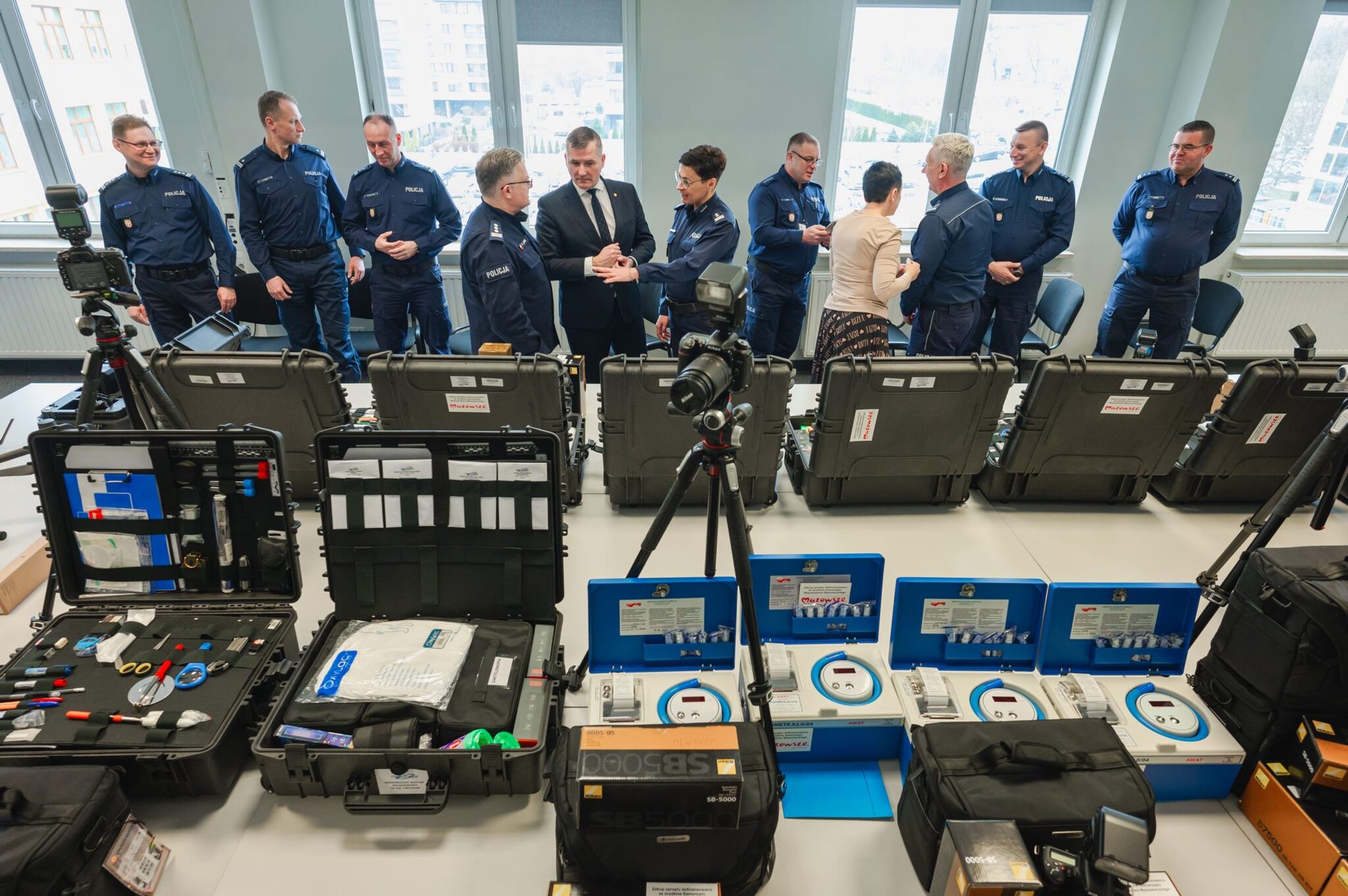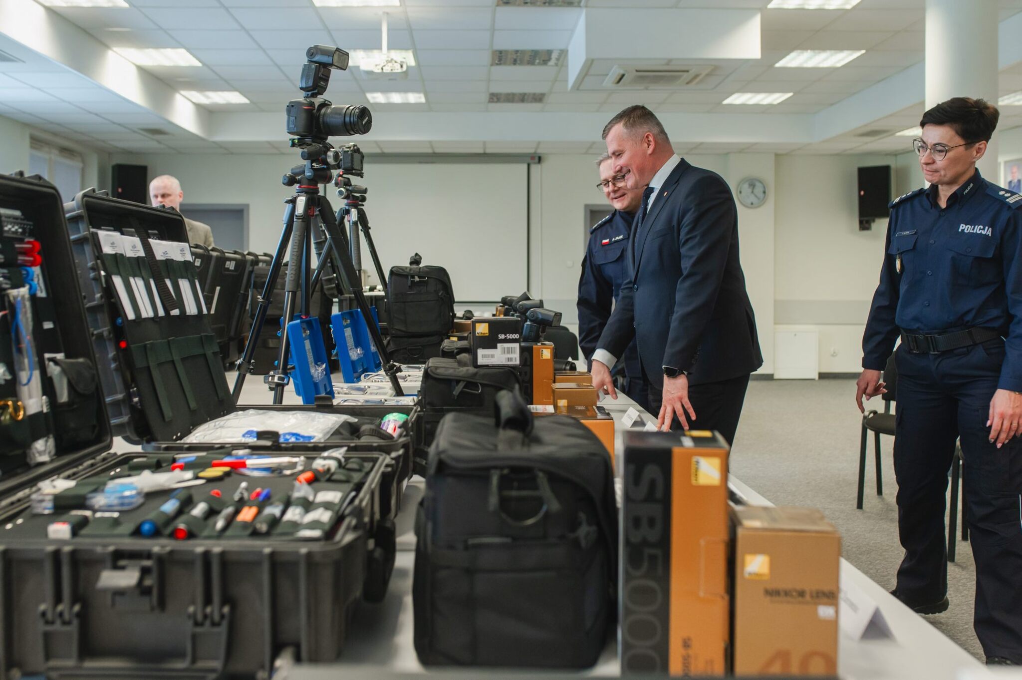 Aparaty fotograficzne, walizki kryminalistyczne, alkomaty i dron – ten sprzęt, zakupiony ze środków samorządu województwa mazowieckiego, trafił do kilkunastu komend garnizonu mazowieckiego policji. Wartość dofinansowania to blisko 700 tys. zł. W środę w przekazaniu sprzętu wziął udział wicemarszałek Rafał Rajkowski.