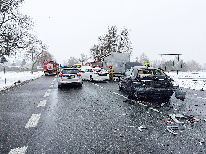 Poważny wypadek z udziałem trzech pojazdów. 18-latek trafił do szpitala śmigłowcem LPR
