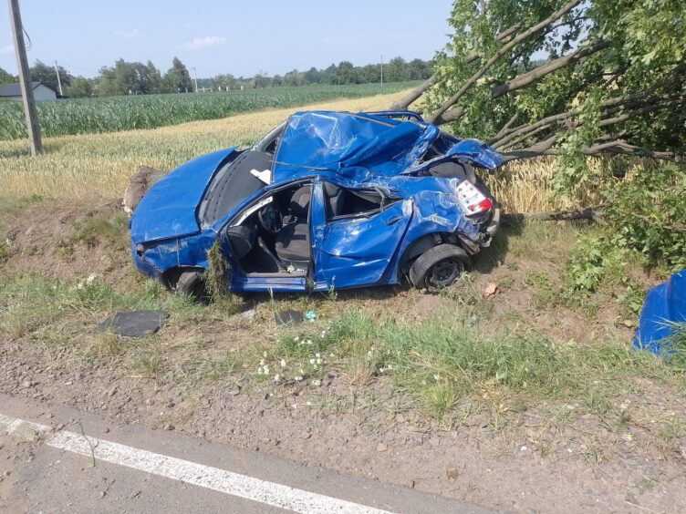 Do kolizja samochodu osobowego doszło w miejscowości Wierzbica na drodze krajowej 61.
