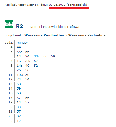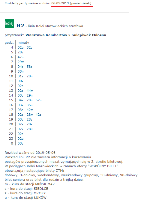 Rozkład jazdy linii R2 Kolei Mazowieckich