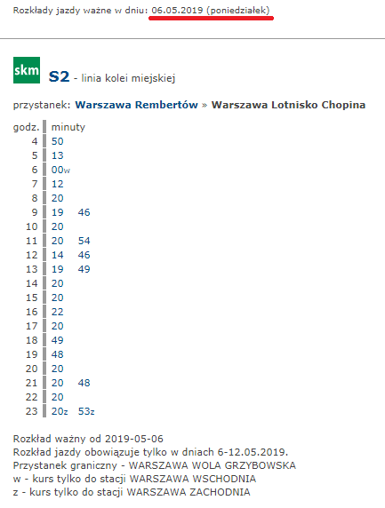Rozkład jazdy linii R6 Kolei Mazowieckich