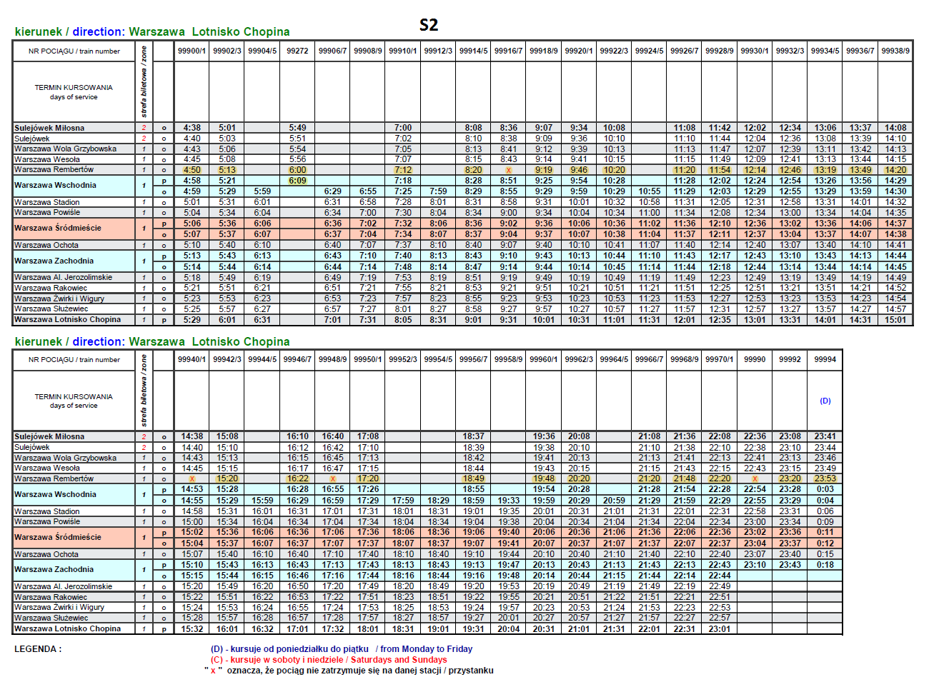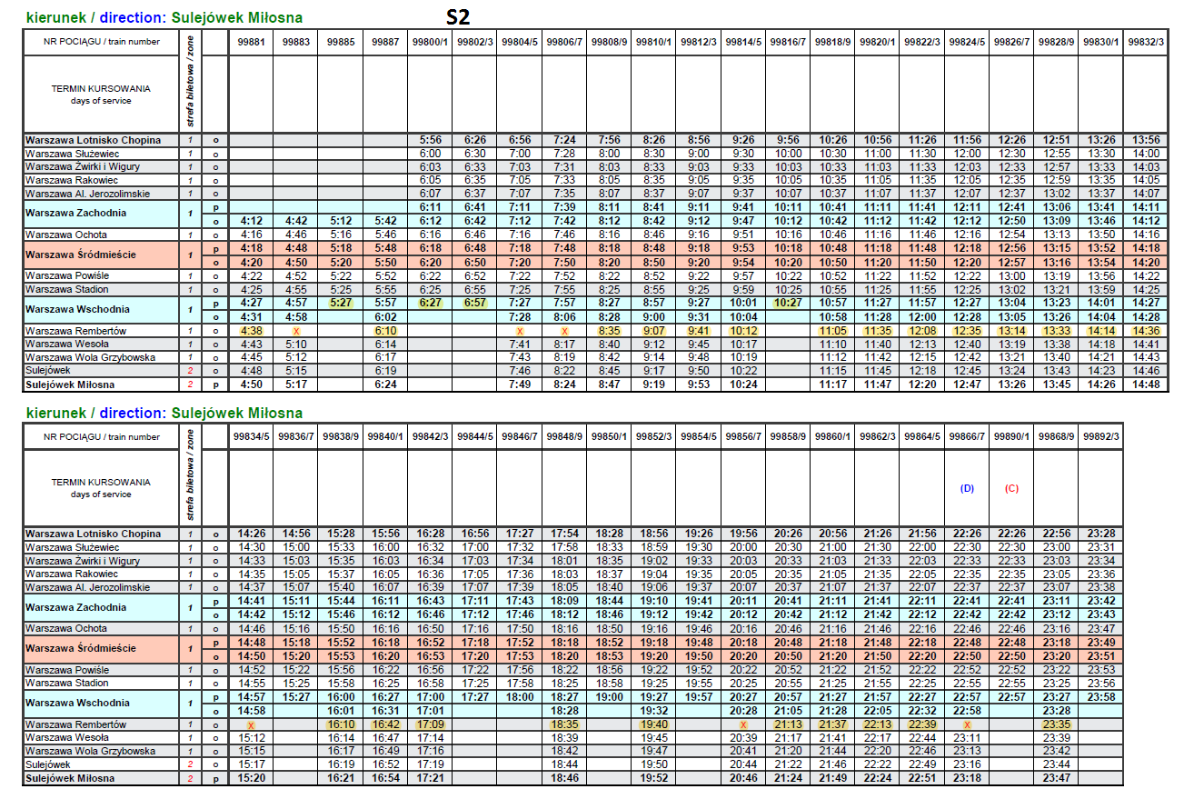 - w pociągach SKM linii S2 na odcinku Warszawa Zachodnia ? Sulejówek Miłosna,