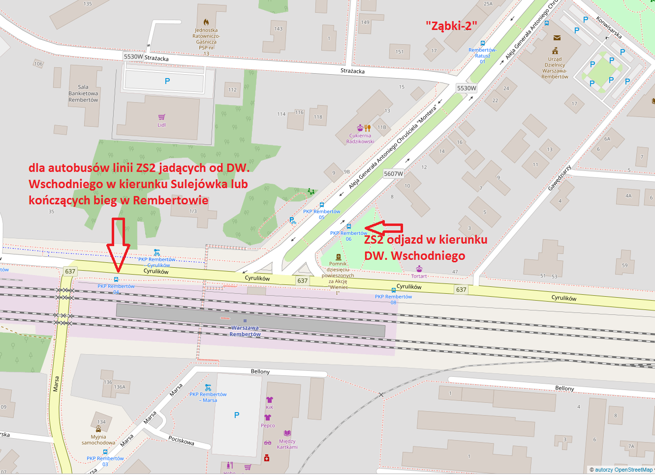W kursach skróconych autobusy dojadą do pętli PKP REMBERTÓW. Autobusy linii ZS2 będą zatrzymały się tylko na wybranych przystankach, głównie przy stacjach kolejowych oraz w miejscach dogodnych przesiadek. Linia ZS2 będzie jechać ul. Strażacką i zatrzymywać się na przystanku „na żądanie: przy ul. Chełmżyńskiej na przystanku „Rondo Granzowa” co umożliwi przesiadkę z i na linię 145.