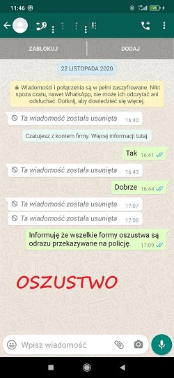 Policjanci wołomińscy ostrzegają przed oszustami wyłudzającymi pieniądze metodą ?na BLIK? oraz OLX i komunikator WhatsApp. Większość tego typu przestępstw zaczyna się od przejęcia czyjegoś konta na portalu społecznościowym. Przestępcy za ich pomocą rozsyłają prośby do znajomych o opłacenie jakiegoś zamówienia czy też pożyczkę pieniędzy.