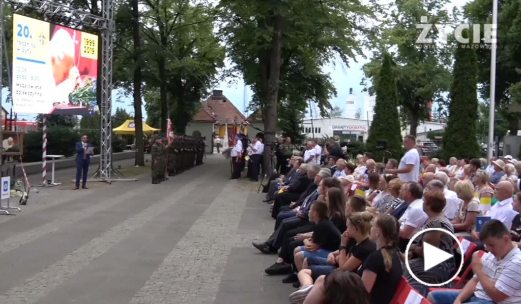 Drugą część uroczystości rozpoczął przemarsz Kompani reprezentacyjnej 9. Batalionu Dowodzenia. Podczas uroczystości głos zabrał burmistrz Radzymina Krzysztof Chaciński, który 20 lat temu jako nastolatek podkreślił: ?Pamiętam podniosłą atmosferę przygotowań i tłumy ludzi, którzy dla tych kilkunastu minut obecności Papieża w naszym mieście, już od wczesnych godzin porannych zajmowali sektory, mimo że sama wizyta miała się odbyć ok. godz. 18:00. To pokazywało jak ważne było wydarzenie dla mieszkańców Radzymina i okolicznych?. Na zakończenie podziękował tym, którzy przyczynili się do zaproszenia i organizacji najważniejszej w historii miasta wizyty.  Słowa skierował do ówczesnych władz miasta: p. Pawła Solisa, p. Jana Wnuka, p. Janusza Rasińskiego i p. Jerzego Berty.