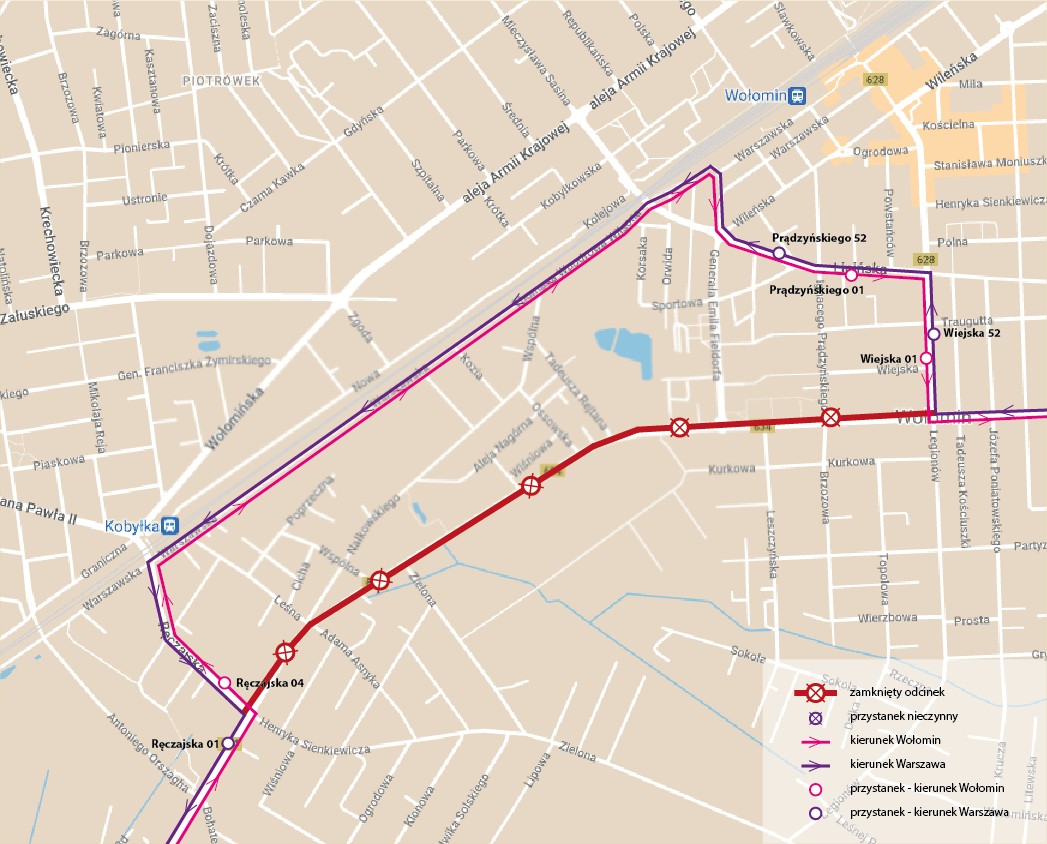 W związku z kolejnym etapem przebudowy drogi wojewódzkiej 634, od 19 lutego zamknięty zostanie kolejny odcinek pomiędzy ul. Ręczajską w Kobyłce, a ul. Legionów w Wołominie. Autobusy linii W i T zostają skierowane na trasę objazdową.