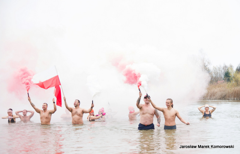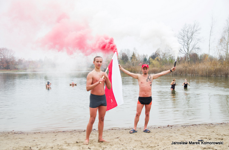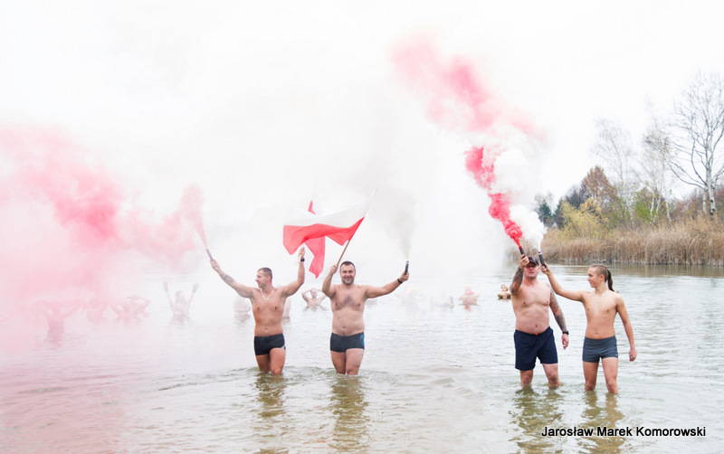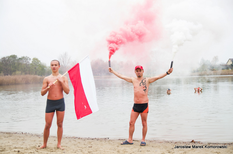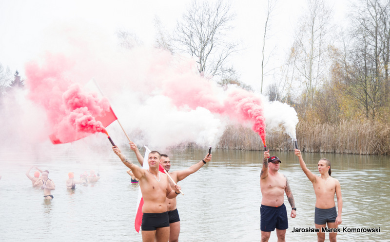 W tym roku Kobyłkowsko-Wołomińskie Morsy po raz kolejny udowodniły, że uczcić Dzień Niepodległości można w sposób niebanalny. Święto w wodzie – czemu nie – wszak wodę kochają. Było kolorowo, wybuchowo i… oczywiście mokro.
