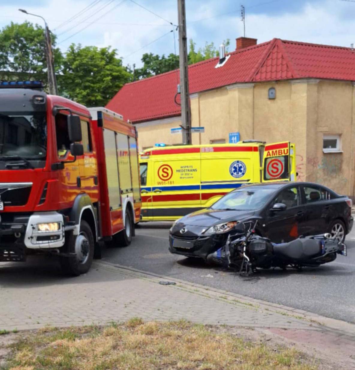 W Wołominie, doszło do groźnego wypadku drogowego z udziałem motocyklisty i kierowcy samochodu osobowego. Według wstępnych ustaleń służb ratunkowych motocykl uderzył w bok samochodu osobowego. Siła zderzenia była na tyle duża, że kierujący jednośladem doznał obrażeń i wymagał natychmiastowej pomocy medycznej. Na miejsce niezwłocznie wezwano służby – dwa zastępy straży pożarnej, zespół ratownictwa medycznego oraz policję.