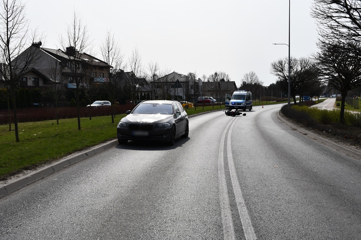 W skutek zdarzenia, kierujący motorowerem z obrażeniami ciała został przewieziony do szpitala. Na szczęście kierująca osobówką nie odniosła obrażeń. 30-latka była trzeźwa. Z uwagi na poniesione obrażenia, od kierującego motorowerem pobrano krew do badań. Teraz mundurowi będą wyjaśniać dokładne przyczyny tego zdarzenia.