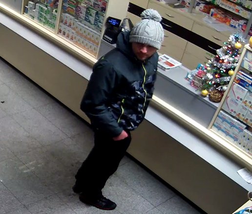 Policjanci z Komisariatu Policji w Ząbkach pod nadzorem Prokuratury Rejonowej w Wołominie prowadzą czynności w sprawie kradzieży dokonanej w dniu 21 grudnia 2018r w Ząbkach przy ul. Krasickiego z szuflady kasy pieniędzy w kwocie 990 złotych na szkodę właściciela apteki. Wizerunek osoby ? mężczyzna około 40 lat, mogący mieć związek z tym przestępstwem zarejestrowały kamery monitoringu w aptece.