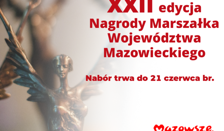 Już po raz 22. samorząd województwa mazowieckiego nagrodzi wybitnych mieszkańców Mazowsza. Nagroda Marszałka Województwa Mazowieckiego to jedno z najbardziej prestiżowych wyróżnień przyznawanych mieszkańcom regionu za zasługi w zakresie promocji kultury i twórczości artystycznej. Zgłoszenia można przesyłać do 21 czerwca br.