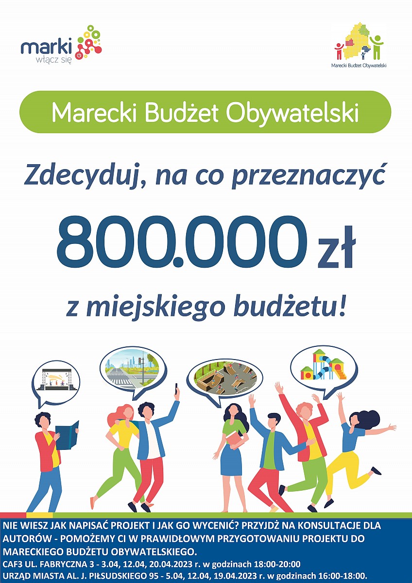 Od dziś (03.04) do 26 kwietnia mieszkańcy mogą zgłaszać swoje pomysły na wykorzystanie 800 tys. zł z Mareckiego Budżetu Obywatelskiego. Nie wiesz jak napisać taki wniosek? Przyjdź na dyżur!
