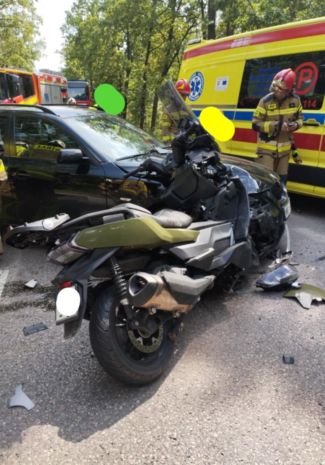 Do zderzenia doszło na jednym z intensywnie uczęszczanych fragmentów DW 631. Jak wynika ze wstępnych ustaleń, pojazd osobowy zderzył się ze skuterem, co wymagało natychmiastowej reakcji służb.