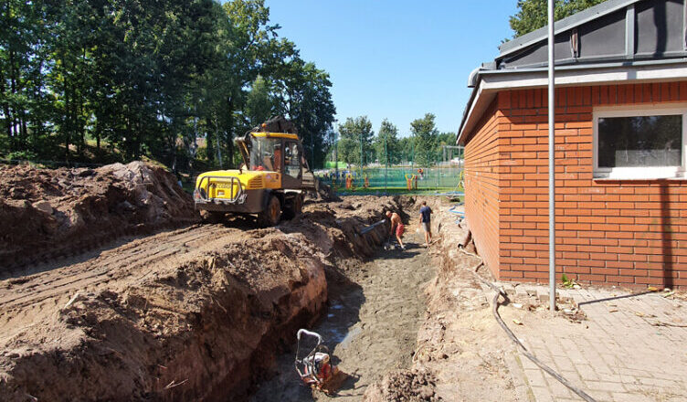? Trwają też przygotowania w zakresie podbudowy, na której w kolejnym etapie zostanie wykonana nawierzchnia kortów tenisowych.