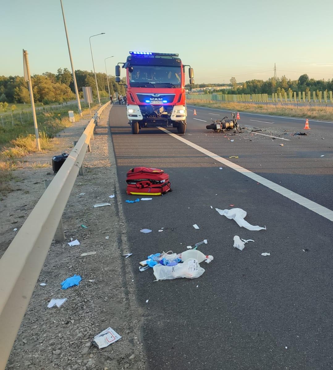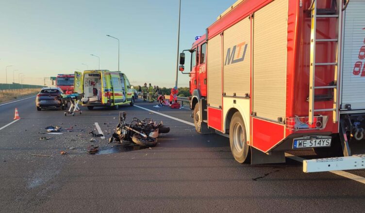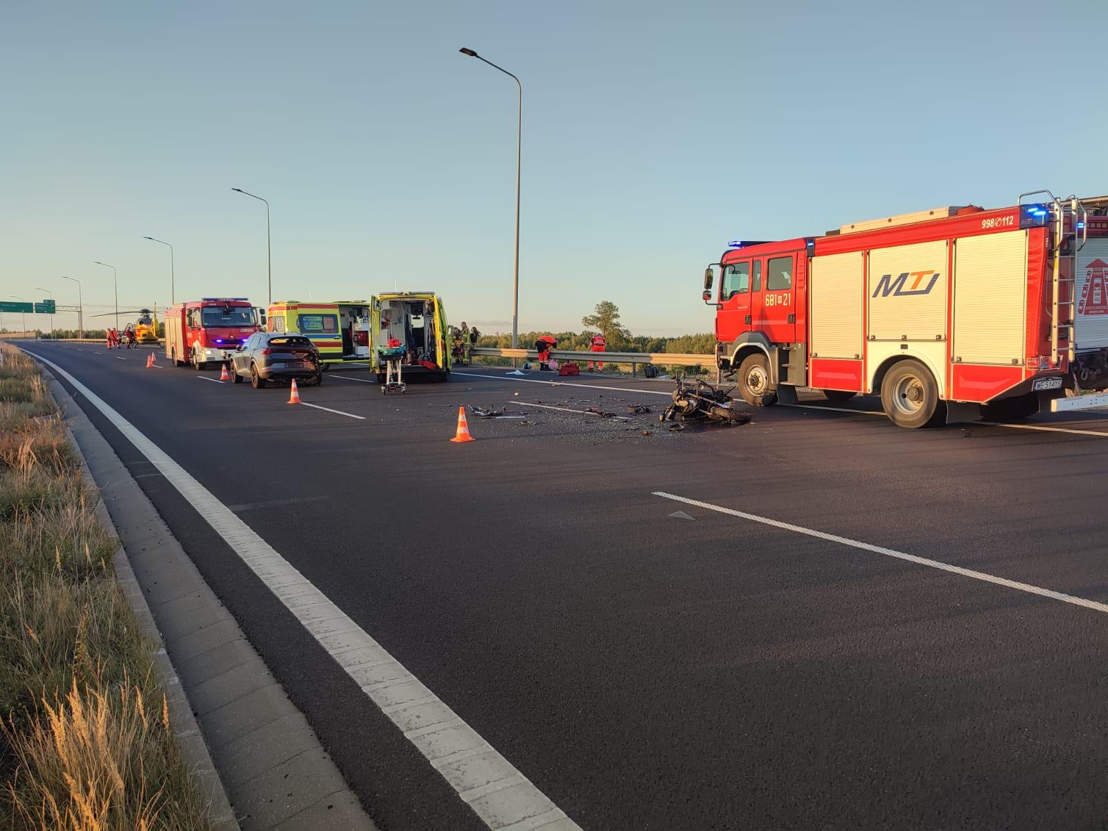 O 18:49 do Stanowiska Kierowania Komendanta Powiatowego PSP w Wołominie wpłynęło zgłoszenie o kolejnym zdarzeniu na trasie S8. Wypadek miał miejsce na 10 kilometrze trasy w kierunku Białegostoku. Po dojeździe na miejsce strażacy zastali samochód osobowy, w który uderzył motocykl. Kierująca jednośladem znajdowała się pod opieką ZRM. Działania strażaków polegały na zabezpieczeniu miejsca zdarzenia oraz wsparciu działań ratowników medycznych. Ze względu na stan poszkodowanej podjęto decyzję o zadysponowaniu śmigłowca LPR, który przetransportował poszkodowaną do szpitala. Na czas działań trasa S8 była zamknięta w obydwu kierunkach. Utrudnienia trwały do godziny 20:15.