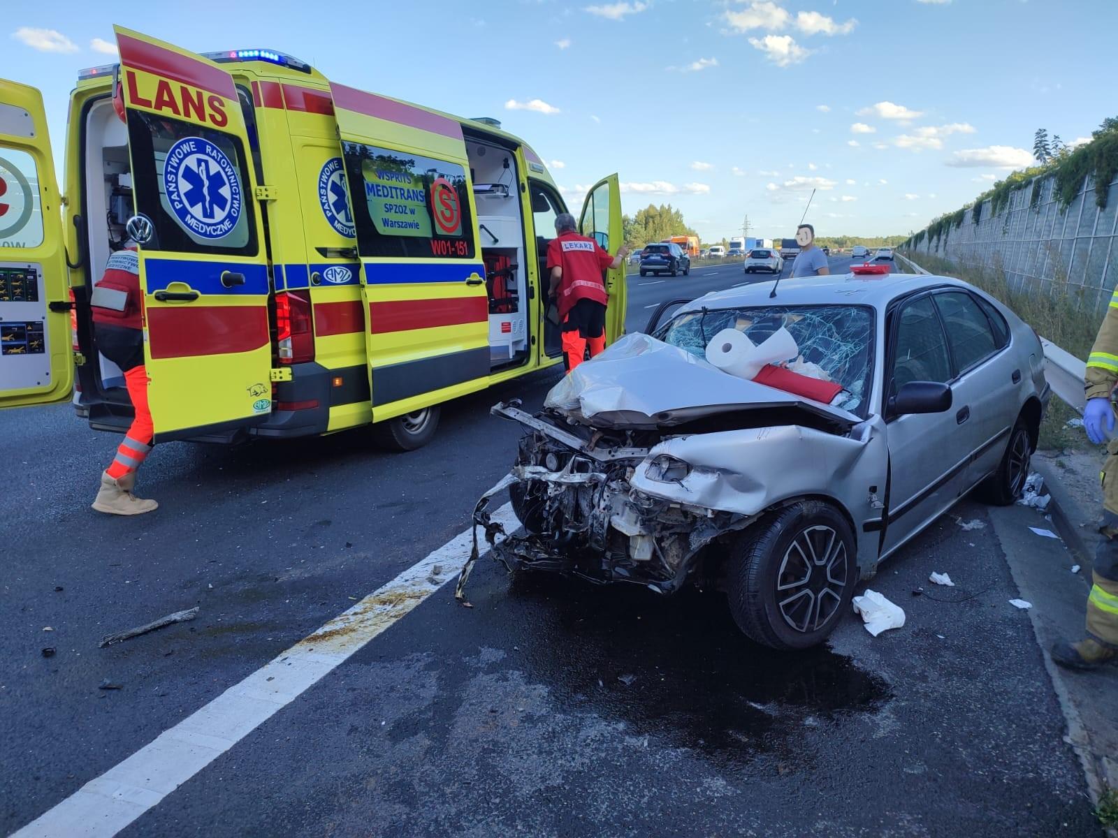 Zderzenie trzech samochodów na DK50. Jedno z aut dachowało.