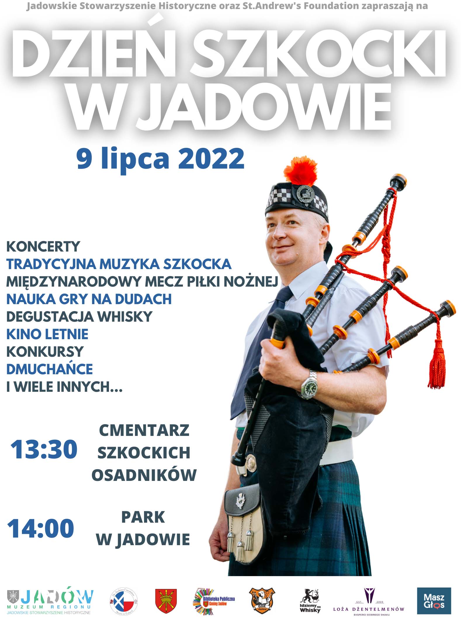 Organizatorami tegorocznej edycji Dnia Szkockiego są: Jadowskie Stowarzyszenie Historyczne we współpracy z Gminą Jadów, St. Andrew’s Foundation, ogólnopolską akcja Masz Głos Fundacji Batorego.