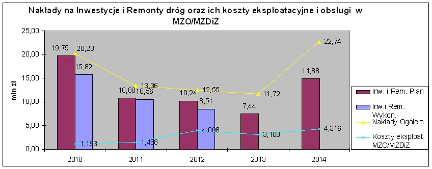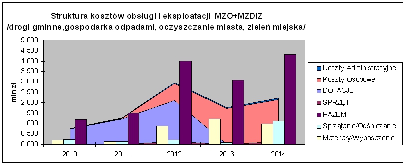 A chodzi; – o to, aby ważyć słowa, uniesioną rękę, pieniądz publiczny i brać za nie odpowiedzialność. Działania dotyczące spółek komunalnych i zakładów budżetowych czas zweryfikować, a rezultaty ocenić. Na początku 2011 roku poszerzono zakres działalności MZO o drogi gminne i zieleń miejską. Przyświecała temu racjonalizacja działań i kosztów, zwiększenie potencjału, poszerzenie oferty rynkowej, a co najważniejsze budżetowa oszczędność. W/g radnego A. Beredy dotacja 1,7 mln zł jaką rzekomo obdarował ten zakład poprzednik R. Madziara w 2010 r. mogła powiększyć inwestycje gminne o blisko 10%. Minął się z prawdą, dofinansowanie było o milion niższe, a i dzisiaj równie skrupulatnie nie szacuje podobnego poziomu ograniczeń w inwestycjach. Wsparcie obejmujące swoim zakresem drogi gminne, oczyszczanie miasta, gospodarkę odpadami i zieleń miejską (d.o.g.z.) w okresie od kiedy przewodniczy komisji rewizyjnej wzrosło z 742 tys. zł do 1 974 tys .zł. w roku 2012 ? a koszt obsługi tego samego zakresu zadań wzrósł wielokrotnie. Oceniając efekt zmian, ciśnie się na język jedno słowo ? marnotrawstwo ! Wskazuje zarazem przyczyny dramatycznego spadku inwestycji oraz remontów drogowych, ich finansowanie w okresie 3 lat spadło prawie o połowę. Zestawienie nakładów budżetu gminy na d.o.g.z. w latach 2010 – 2014 obrazuję graficznie, bardziej przekonują niż krzyki oburzenia. Reasumując, poszerzanie zakresu działań ich przemieszczanie i powierzanie, raz MZO, raz MZDiZ, nie generuje ani zysków, ani oszczędności – wręcz odwrotnie – zamiast poprawiać, szkodzi.