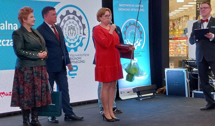 Podczas Targów Ekonomii Społecznej Prezes Spółdzielni Ewelina Gzowska odebrała statuetkę przyznaną w kategorii „Rozwój” w 7 edycji konkursu „Mazowiecka Marka Ekonomii Społecznej”