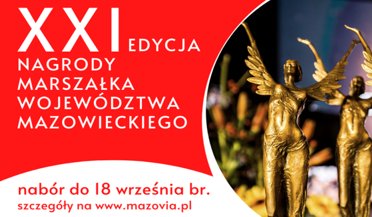 Samorząd województwa mazowieckiego już po raz 21. nagrodzi wybitnych mieszkańców regionu, którzy promują województwo, tworzą, upowszechniają i chronią kulturę. Kandydatów do Nagrody Marszałka Województwa Mazowieckiego można zgłaszać do 18 września br.