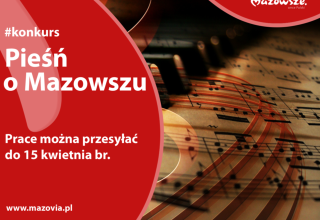Samorząd województwa mazowieckiego szuka autora ?Pieśni o Mazowszu?. Krótki utwór, składający się z maksymalnie 3 zwrotek i refrenu ma przybliżyć mocne strony regionu i pomóc w budowaniu tożsamości regionalnej mieszkańców Mazowsza. Na autora najlepszej pracy czeka nagroda pieniężna w wysokości 10 tys. zł. Prace można przesyłać do 15 kwietnia br.