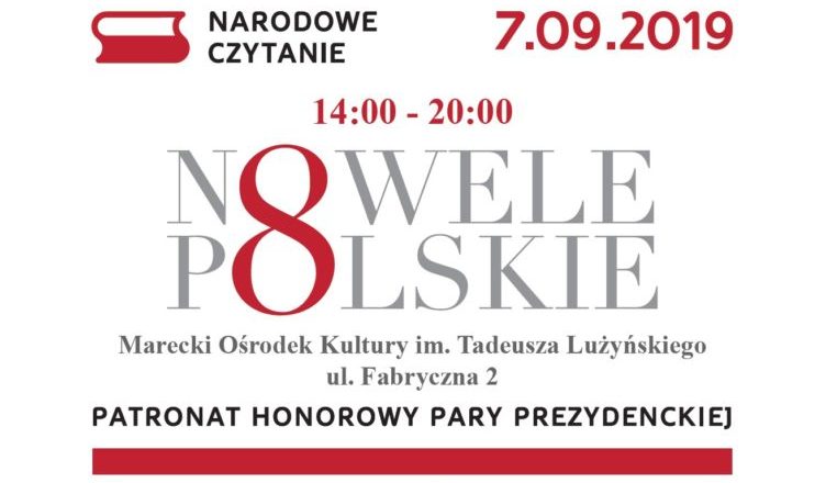 Co roku Marki włączają się do akcji ?Narodowe Czytanie?. W tym roku będziemy przypominać sobie nowele z naszego dzieciństwa/młodości. Zapraszamy do Mareckiego Ośrodka Kultury im. Tadeusza Lużyńskiego. To tu 7 września (sobota) wspólnie będziemy czytać m.in. Prusa, Reymonta, Żeromskiego, Sienkiewicza czy Schultza. Początek akcji, organizowanej przez Bibliotekę Publiczną Miasta Marki oraz MOK, zaplanowaliśmy na godzinę 14.00.