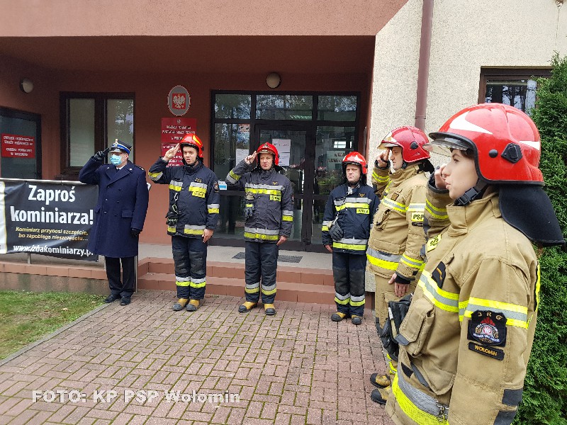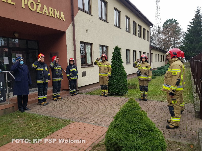 Dnia 11 listopada 2020 roku w Komendzie Powiatowej Państwowej Straży Pożarnej w Wołominie odbył się uroczysty Apel z okazji Narodowego Święta Niepodległości. W uroczystości brał udział Komendant Powiatowej Straży Pożarnej w Wołominie bryg. Andrzej Wysocki oraz strażacy pełniący służbę. Święto rozpoczęto od wciągnięcia Flagi Państwowej na maszt oraz odśpiewania Hymnu Państwowego.
