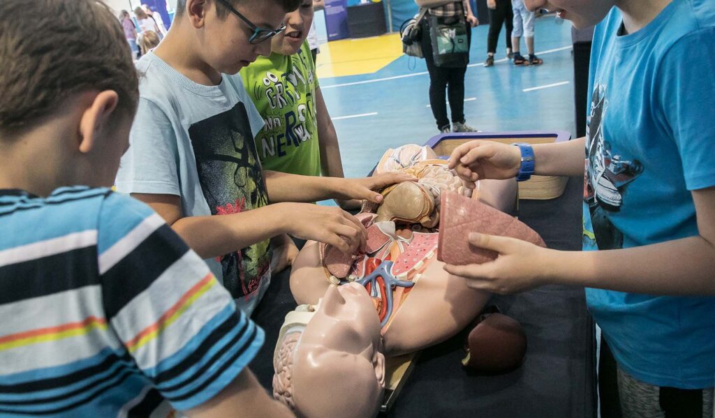 Uczniowie z Zespołu Szkół im. Zofii Solarzowej  w Miąsem przez dwa dni będą cieszyć się samodzielnym eksperymentowaniem. To nie tylko pozwala obudzić ciekawość. Siadając na wirującym krześle, można doświadczyć, jak w praktyce działa teoria zachowania momentu pędu. Można też sprawdzić, jak utrzymać w powietrzu piłkę plażową. Jednym z ulubionych eksponatów jest ?człowiek-układanka? ? dzieci próbują umieścić organy wewnętrze we właściwych miejscach, co budzi dużo emocji.
