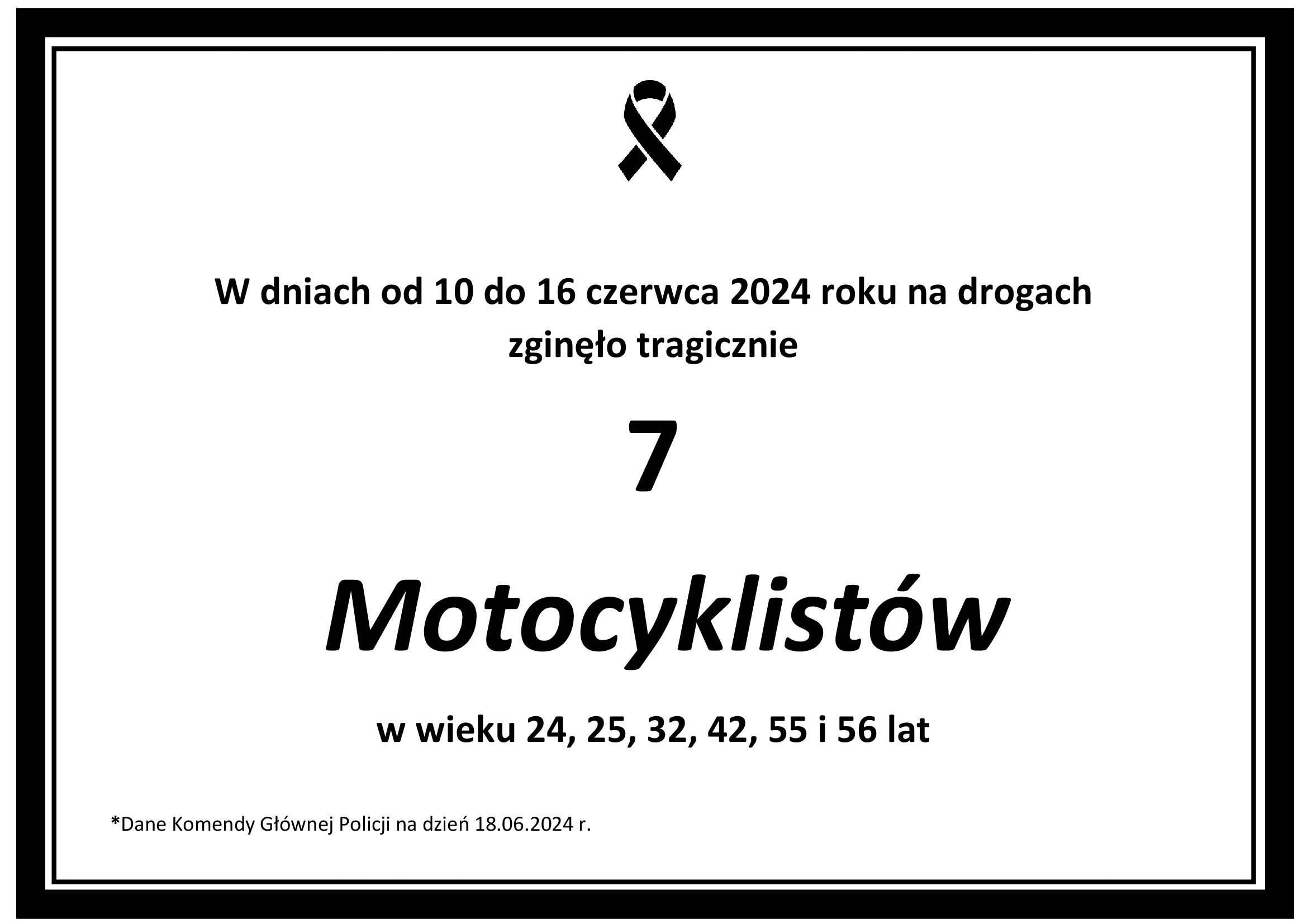 Od 1 stycznia do 18 czerwca 2024 na polskich drogach doszło ogółem do 996 wypadków z udziałem użytkowników motocykli. Zginęły w nich 102 osoby a 928 zostało rannych.