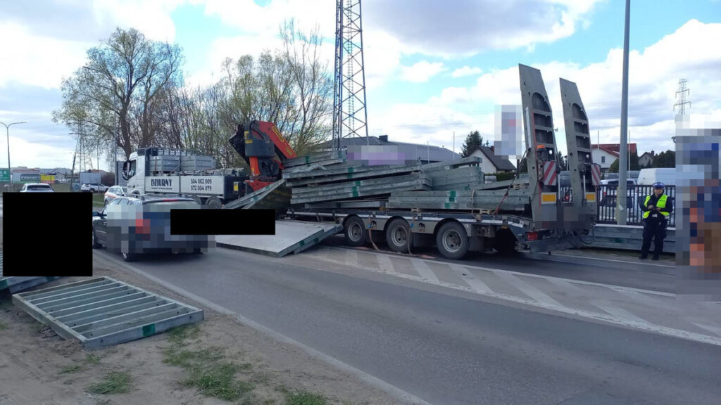 Niebezpieczne zdarzenie w Rembelszczyźnie: Ładunek spadł na przeciwległy pas ruchu
