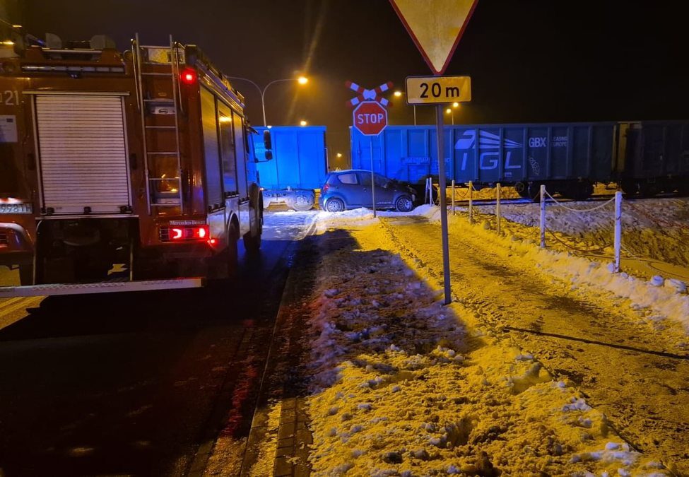 Zderzenie samochodu osobowego z pociągiem towarowym. 40-letnia kierująca trafiła do szpitala.